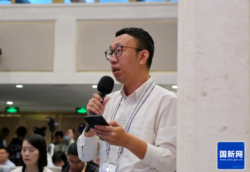 中央广播电视总台央视记者提问(赵一帆 摄)